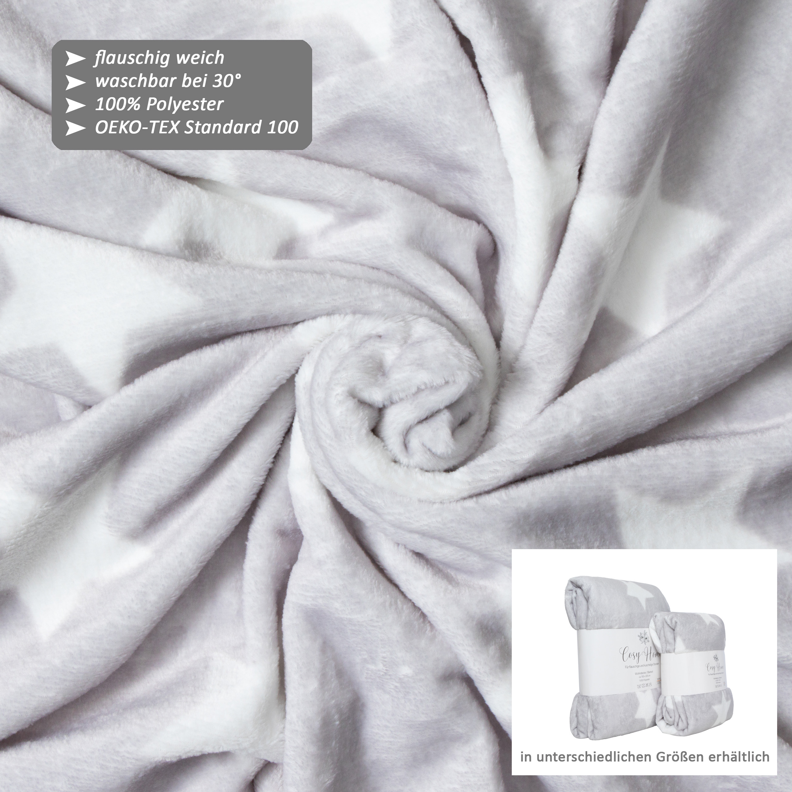 Flauschig-warme Kinderzimmerdecke mit Sternen in creme grau
