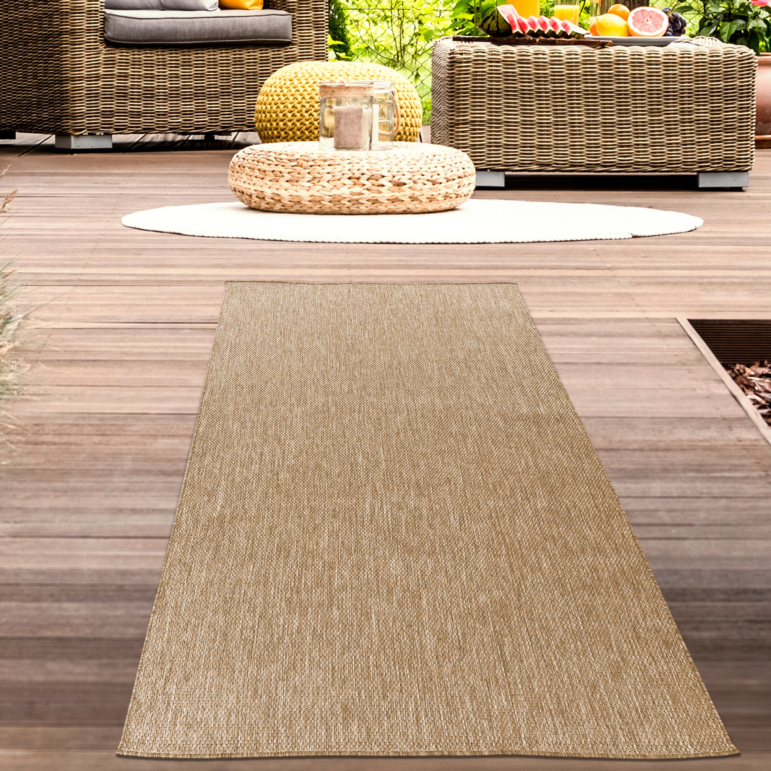 In- und Outdoorteppich Niedrigflor wetterfest einfarbig in Beige
