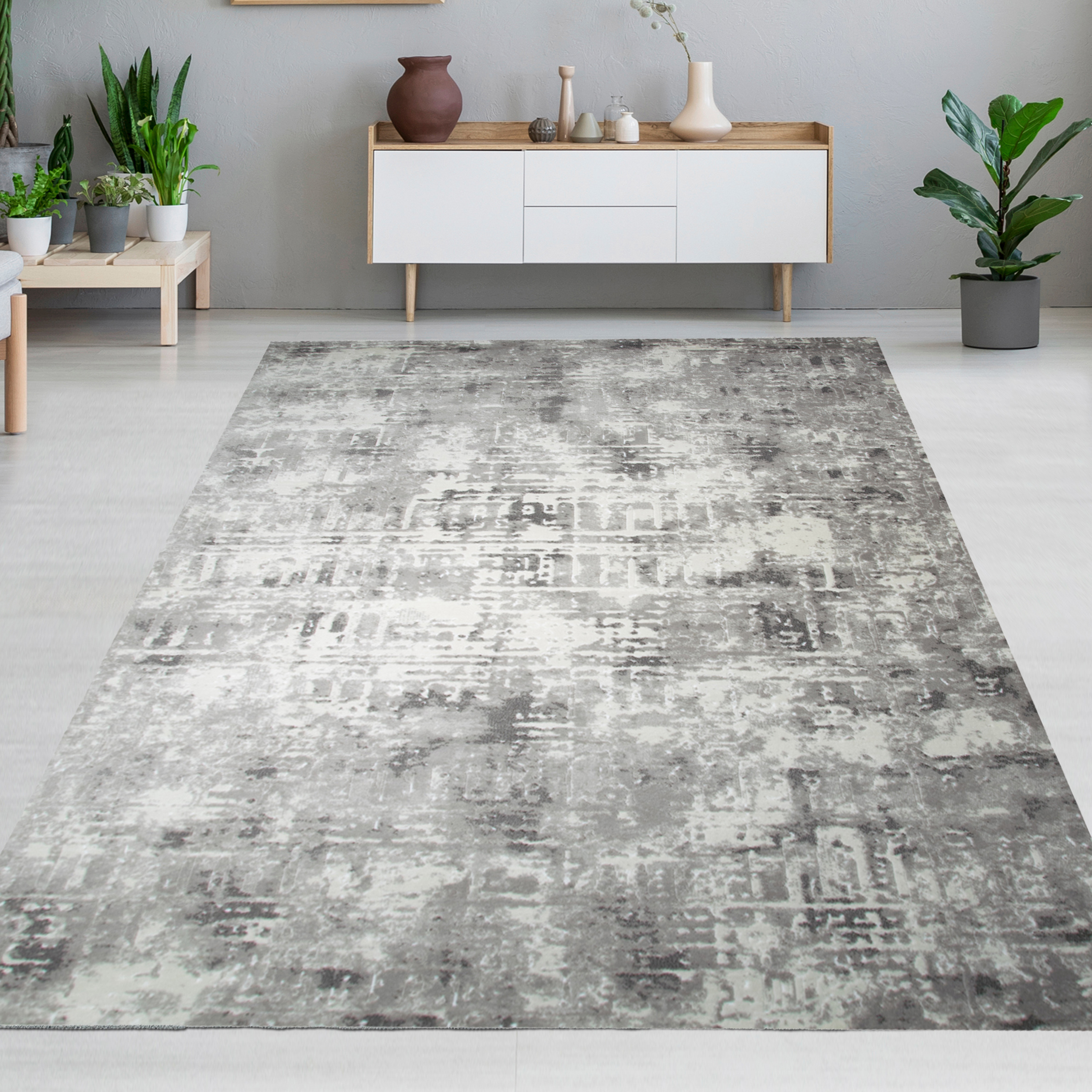 Designteppich mit Strukturmuster Grau Beige Creme