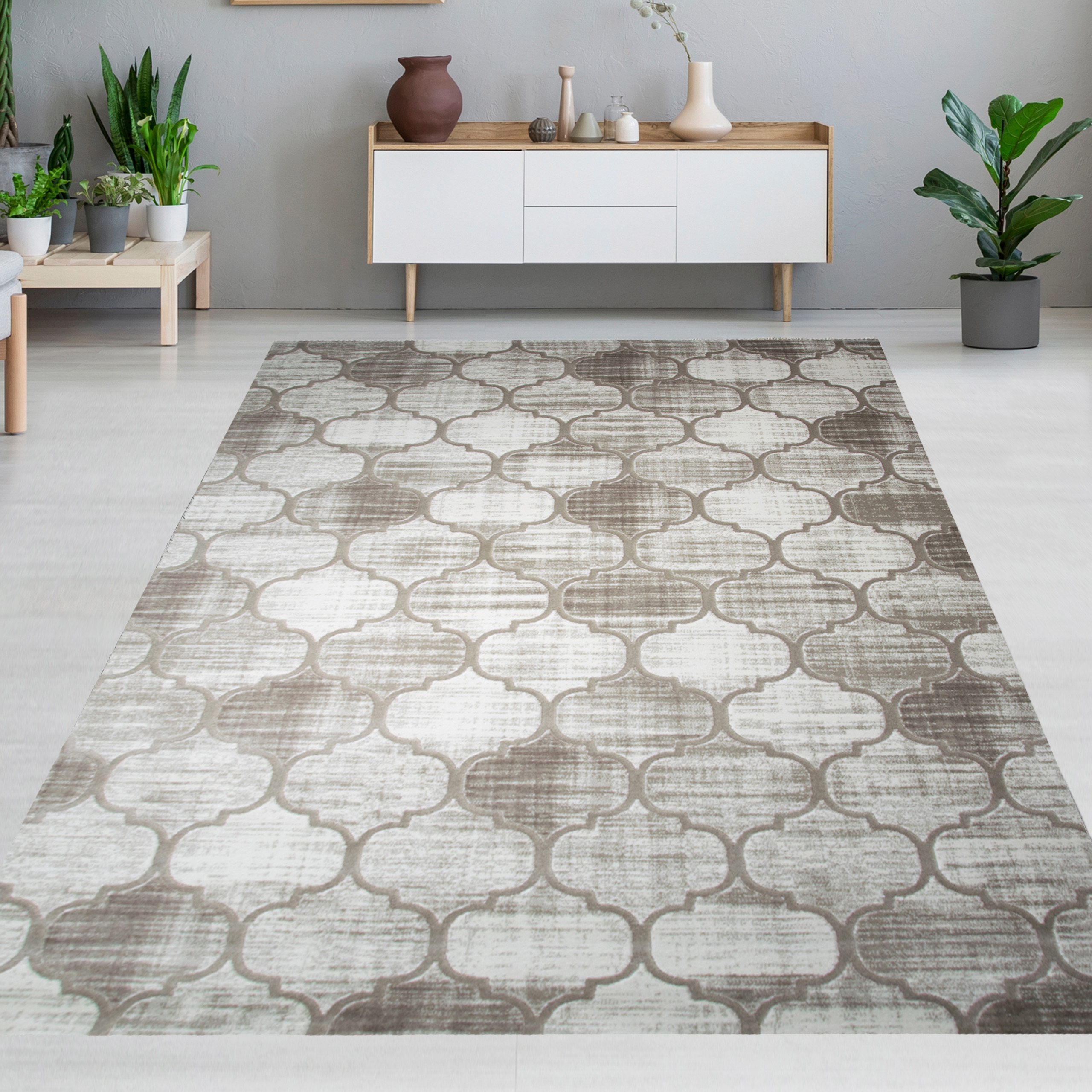 Designteppich mit Ornamentstruktur Creme Beige