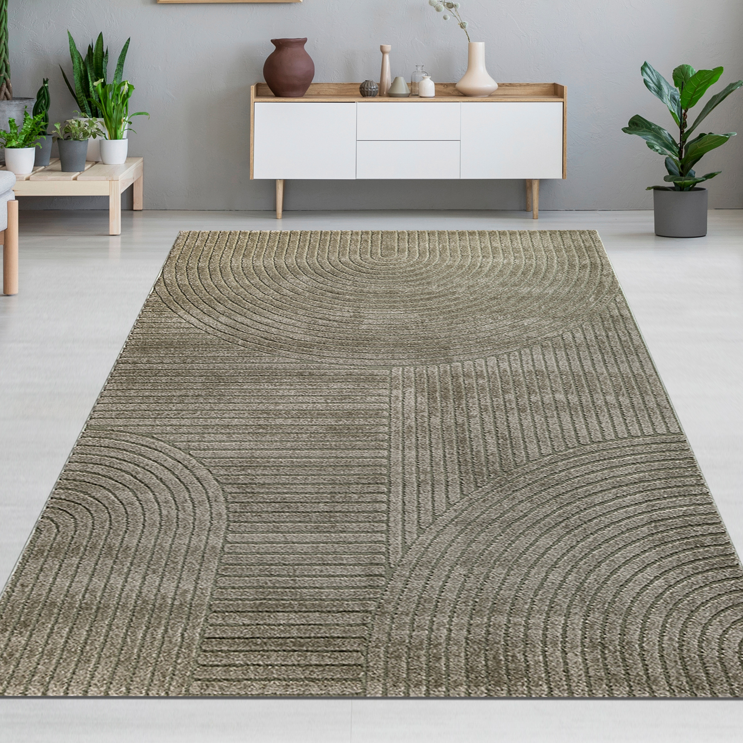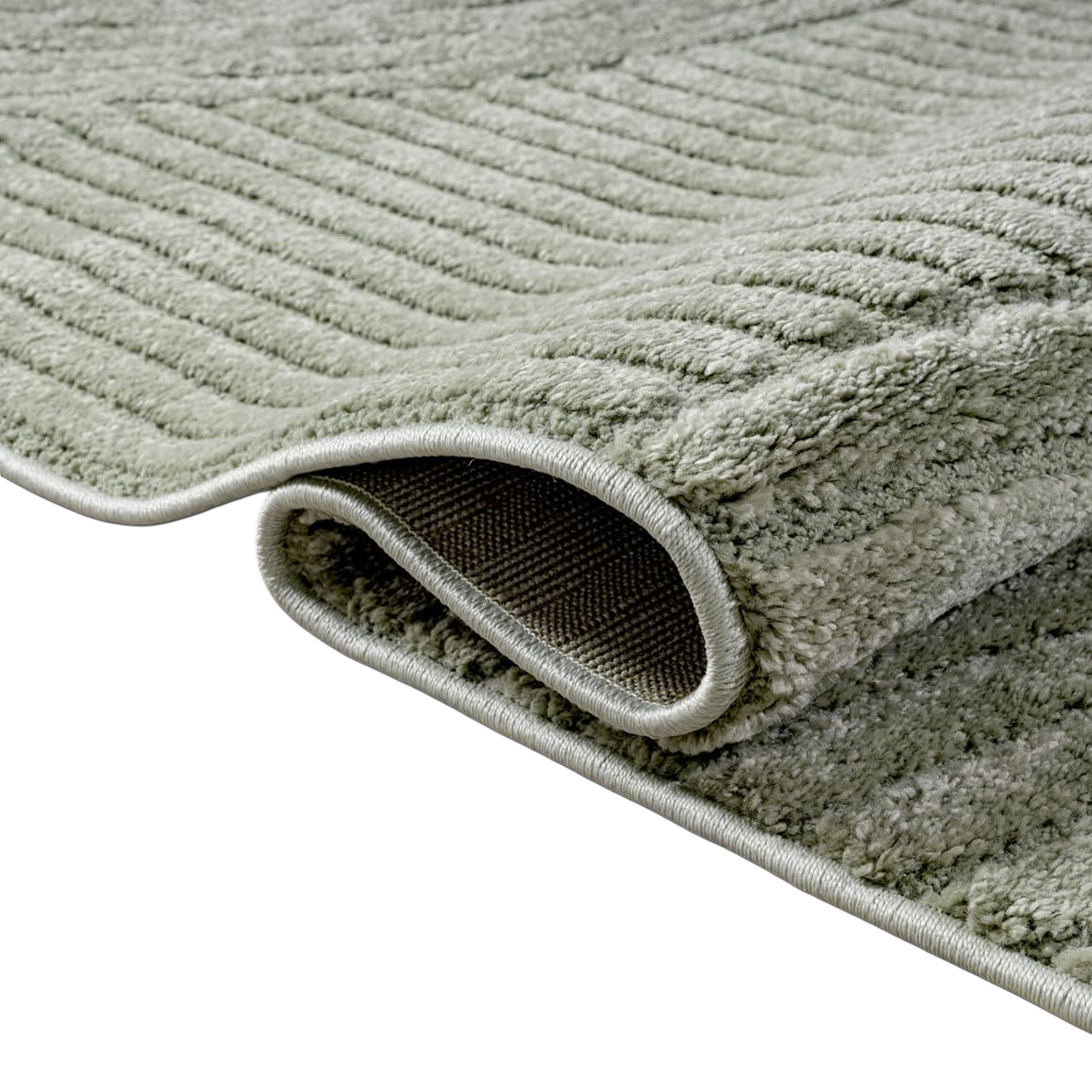 Designteppich grün mit Relieflinien modern pflegeleicht strukturiert