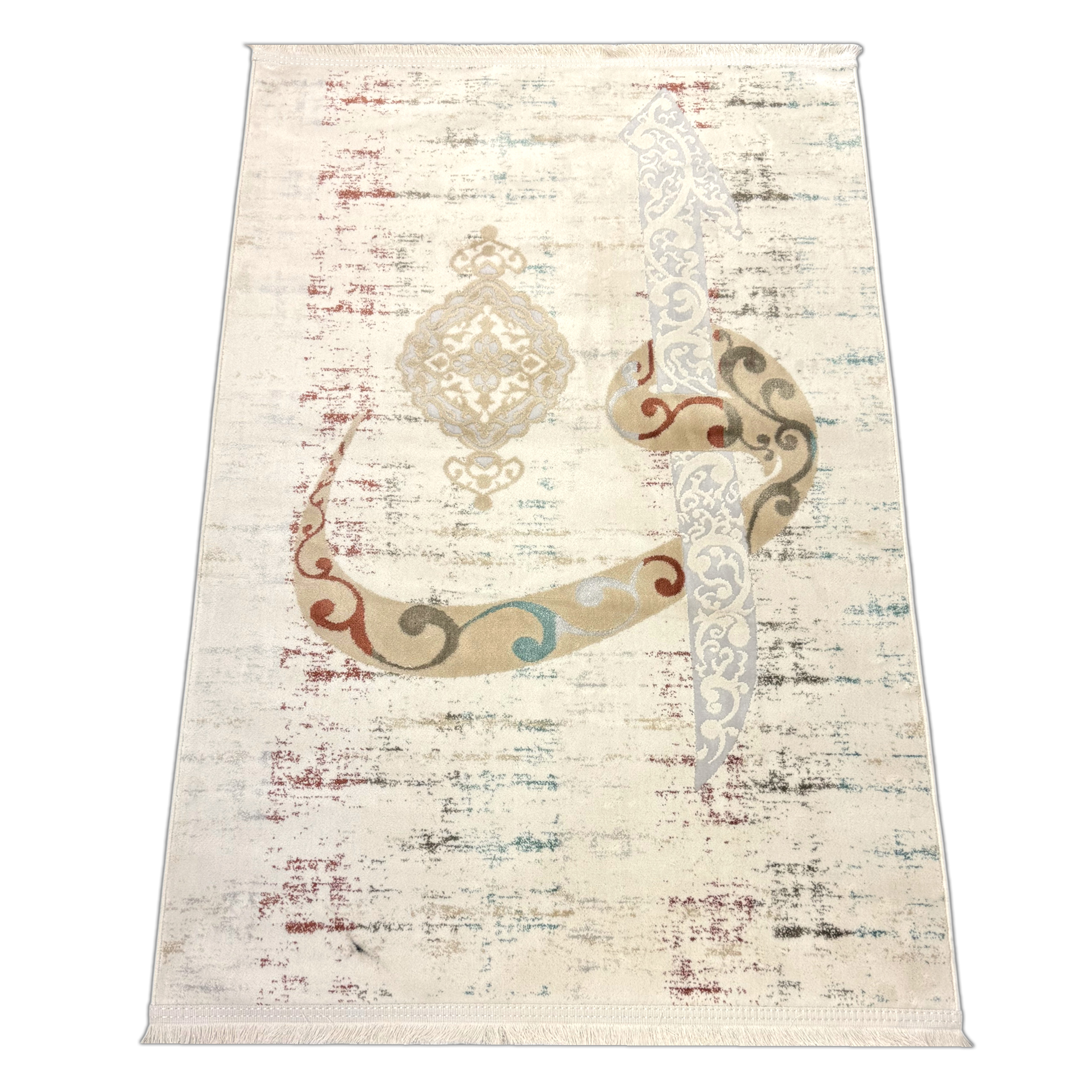 Moderner Gebetsteppich mit arabischer Kalligrafie und Ornamentdesign