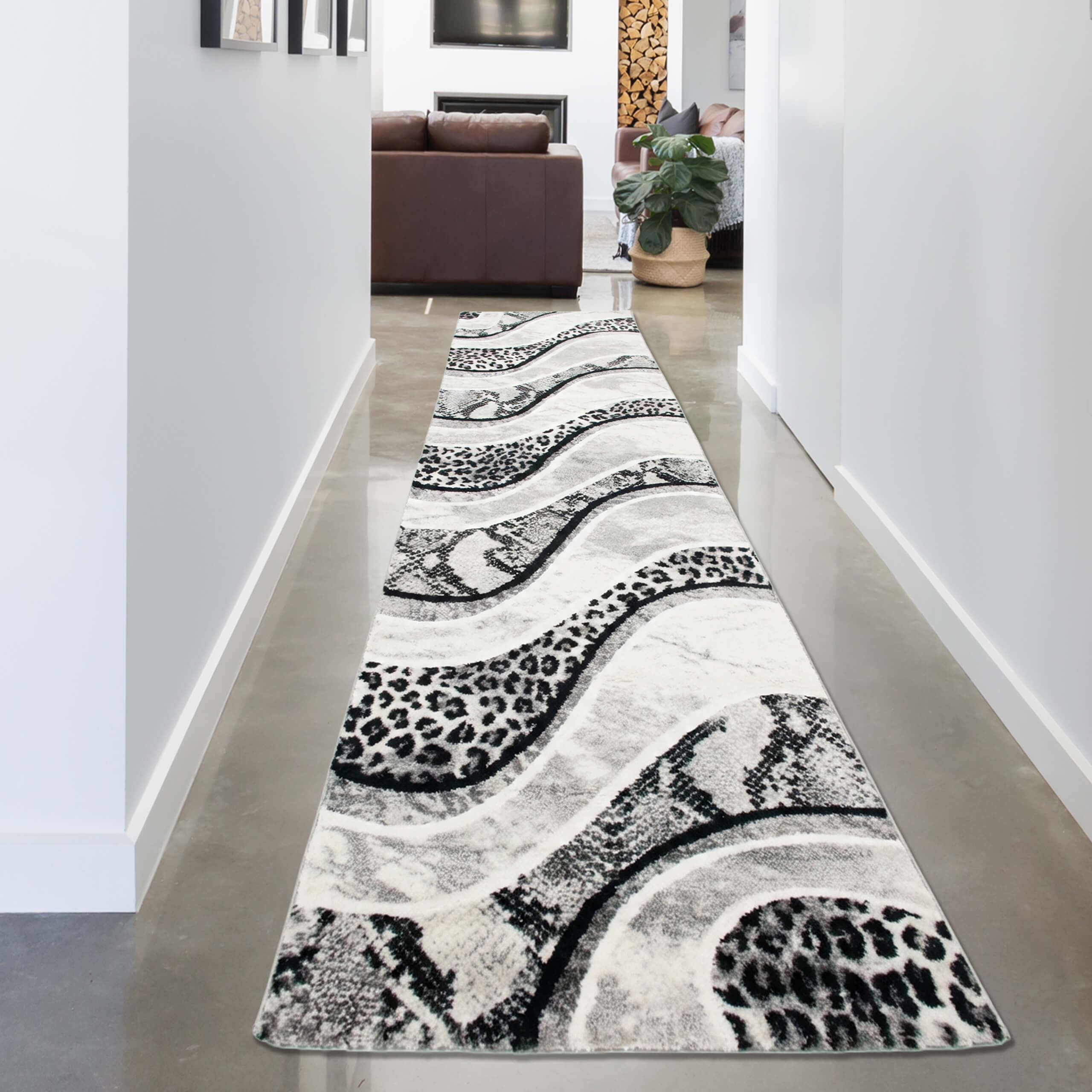 Designteppich Leopardenmuster Grau Schwarz Creme für moderne Räume