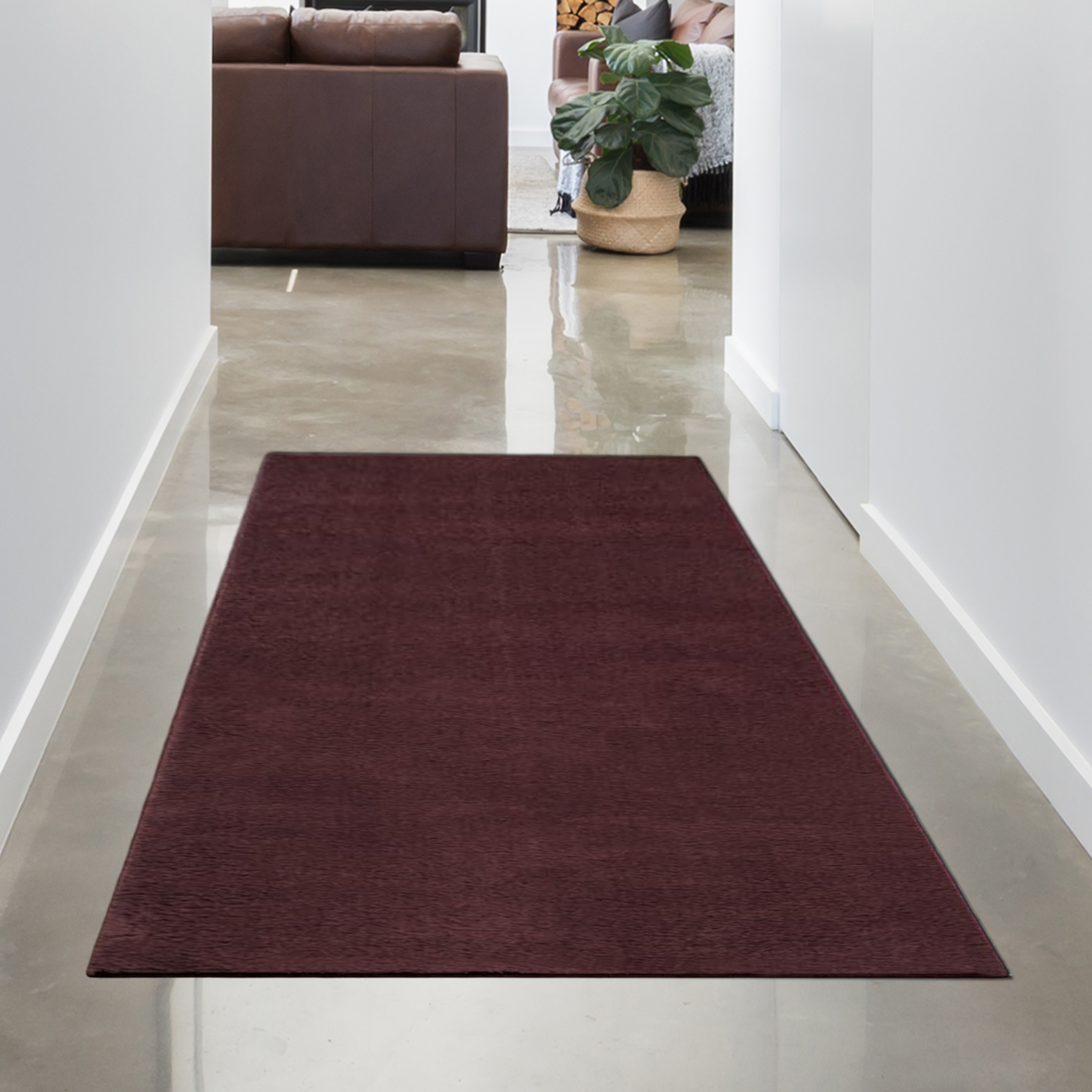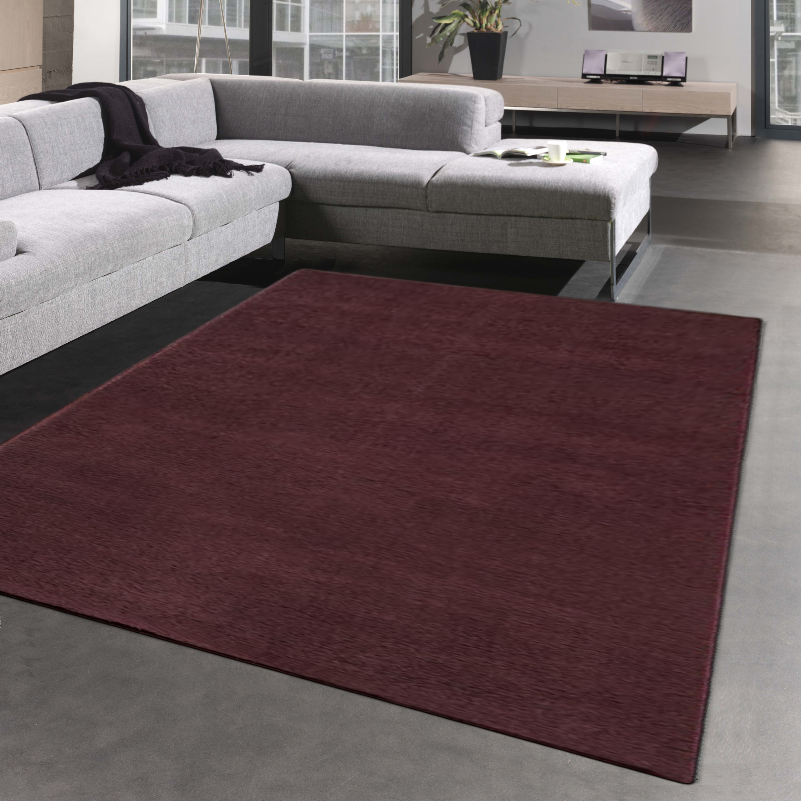 Teppich Uni Modern in dunklem Weinrot